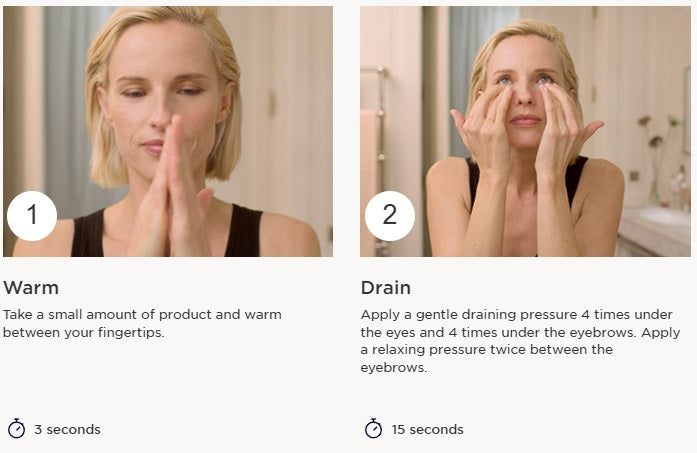 ضعي كمية صغيرة على محيط العين صباحاً ومساءً.