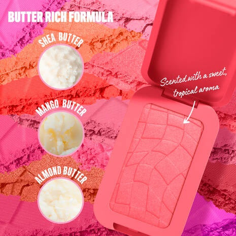 أحمر خدود بودرة غني بالأصباغ ، يتميز بقوام ناعم كالحرير ينساب بسلاسة على البشرة ويمتزج بسهولة ليمنحكِ لونًا طبيعيًا أو جريئًا للخدود. على الرغم من كونه بودرة، إلا أنه يندمج مع بشرتكِ كالزبدة - ومن هنا جاء اسمه.