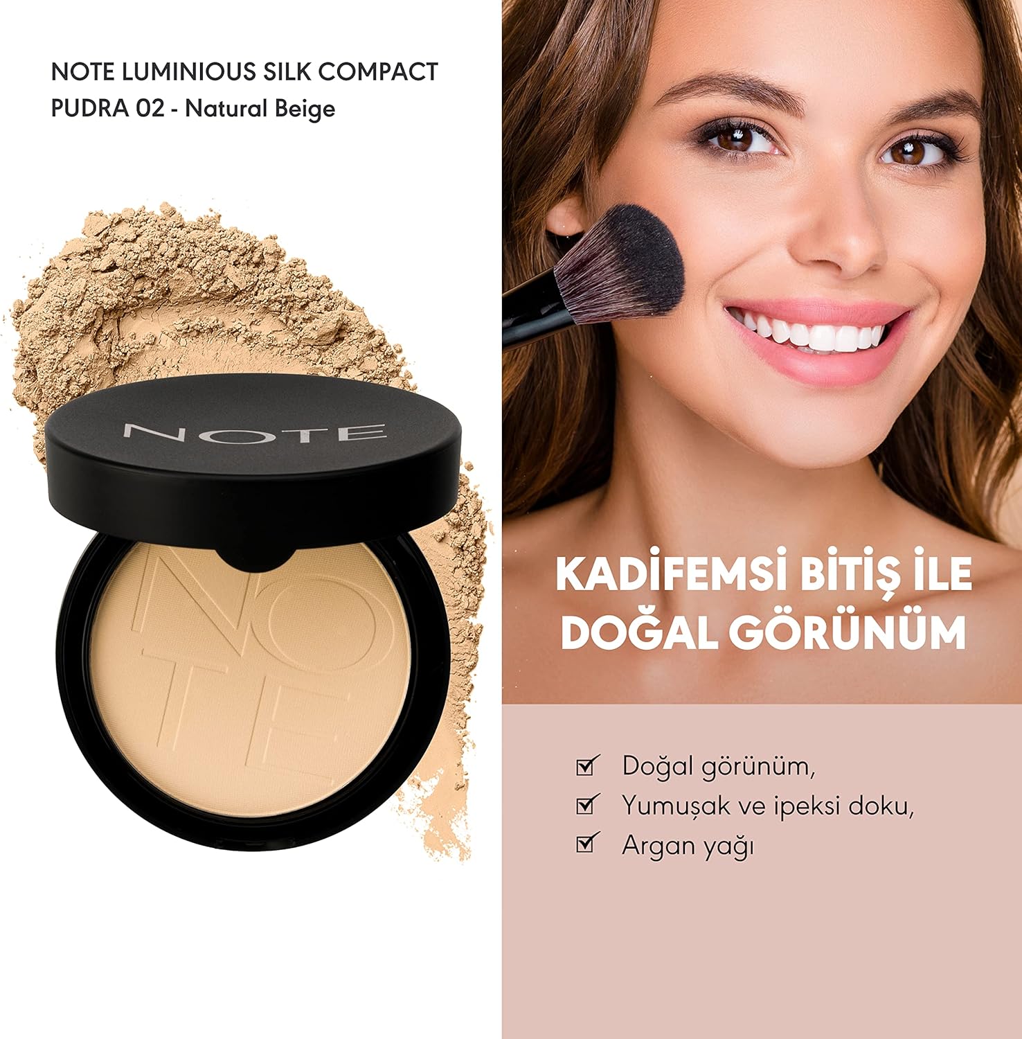 بودرة نوت لومينوس سيلك المضغوطة، بودرة خفيفة الوزن تعمل على توحيد لون البشرة وتنعيمها فورًا. غنية بزيت الأرغان المعروف بخصائصه المرطبة. تتميز بقوام ناعم غير لامع يساعد على توحيد لون البشرة وتقليل اللمعان للحصول على مظهر طبيعي خالٍ من العيوب. تتضمن إسفنجة ومرآة لسهولة الاستخدام. تمنح البشرة لمسة نهائية ناعمة غير لامعة تبدو مشرقة في أي مصدر ضوء. مناسبة لجميع أنواع البشرة. الحجم: 10 غرام. . طريقة الاستخدام: استخدميها بمفردها لتغطية متوسطة غير لامعة، أو ضعيها فوق كريم الأساس السائل لتغطية كاملة. تتضمن إسفنجة ومرآة لسهولة الاستخدام. خالية من العطور، خالية من البارابين